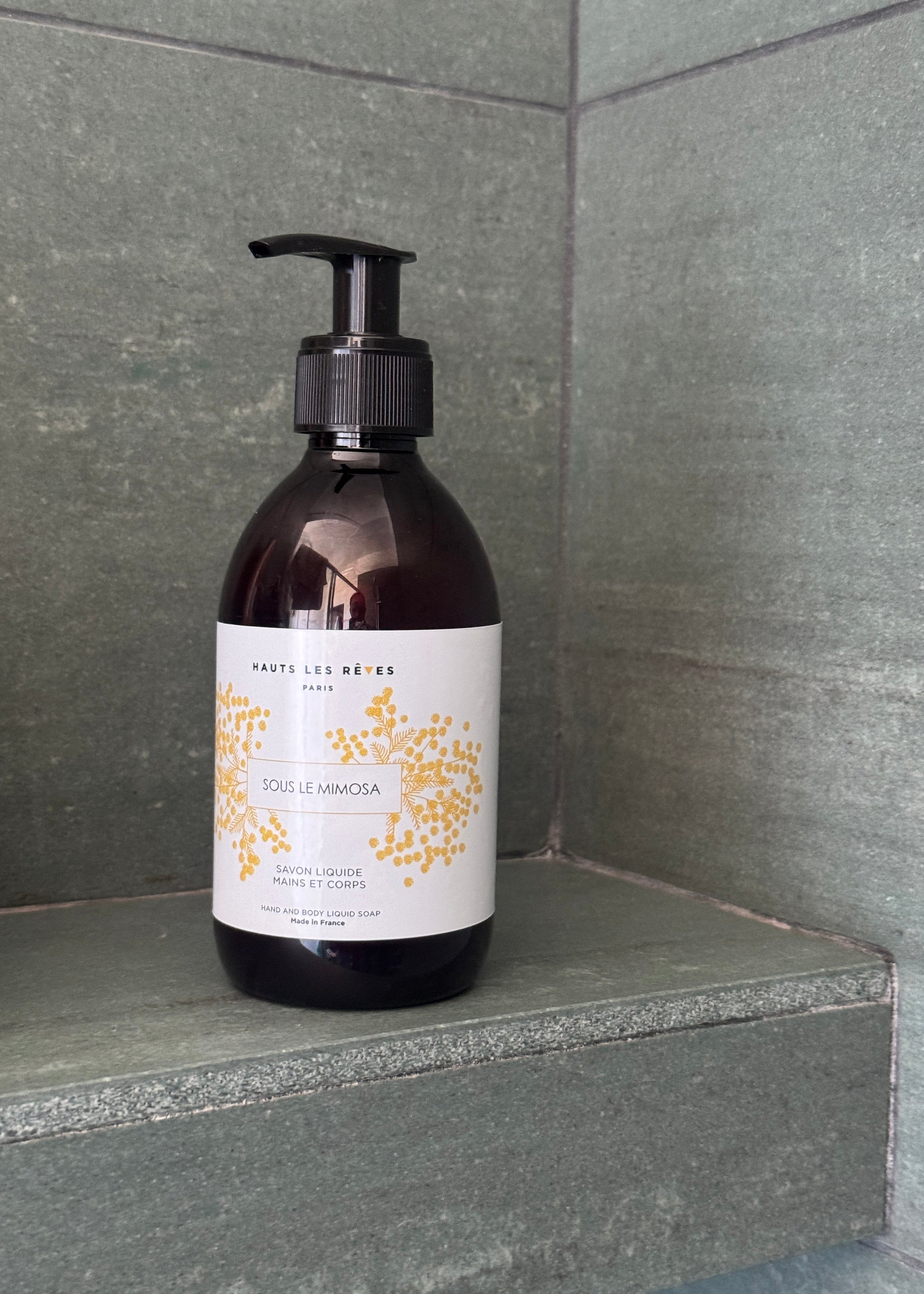 Une seule pression sur la pompe du savon liquide parfumé Sous le mimosa et vous êtes déjà dans des paysages chauds et fleuris !